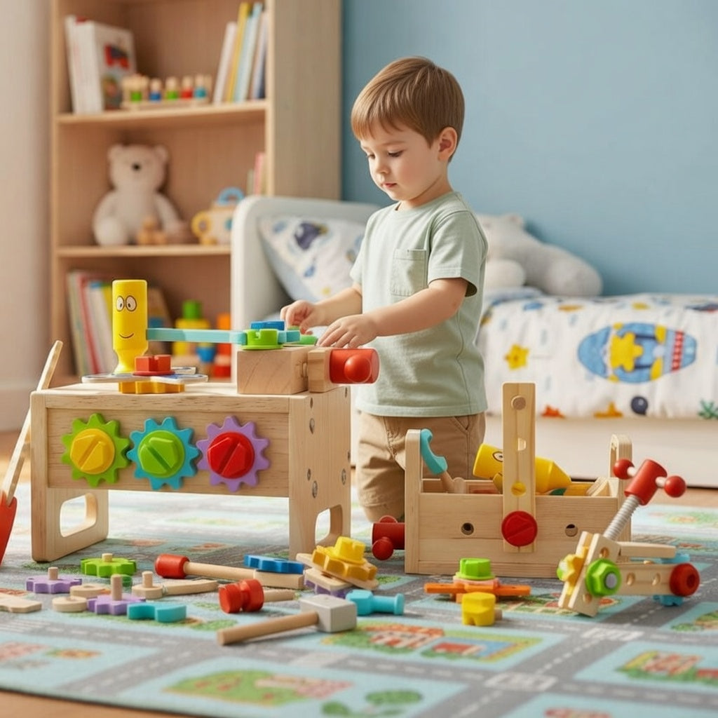 Our baby and toddler toys prioritize safety, sensory exploration, and developmental milestones over flashiness. We look for larger components and non-toxic, durable materials—like wood, organic cotton, and BPA-free silicone.